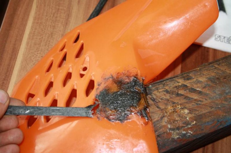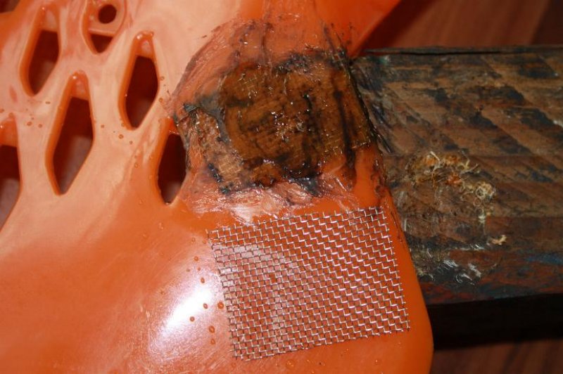 Der Kunststoff verschmelzt mit dem Gitter und in sich selbst. Für feine Poren sind Kunststoffverbundstäbchen, welche für alle Thermoplaste Kunststoffe) verwendet werden können.