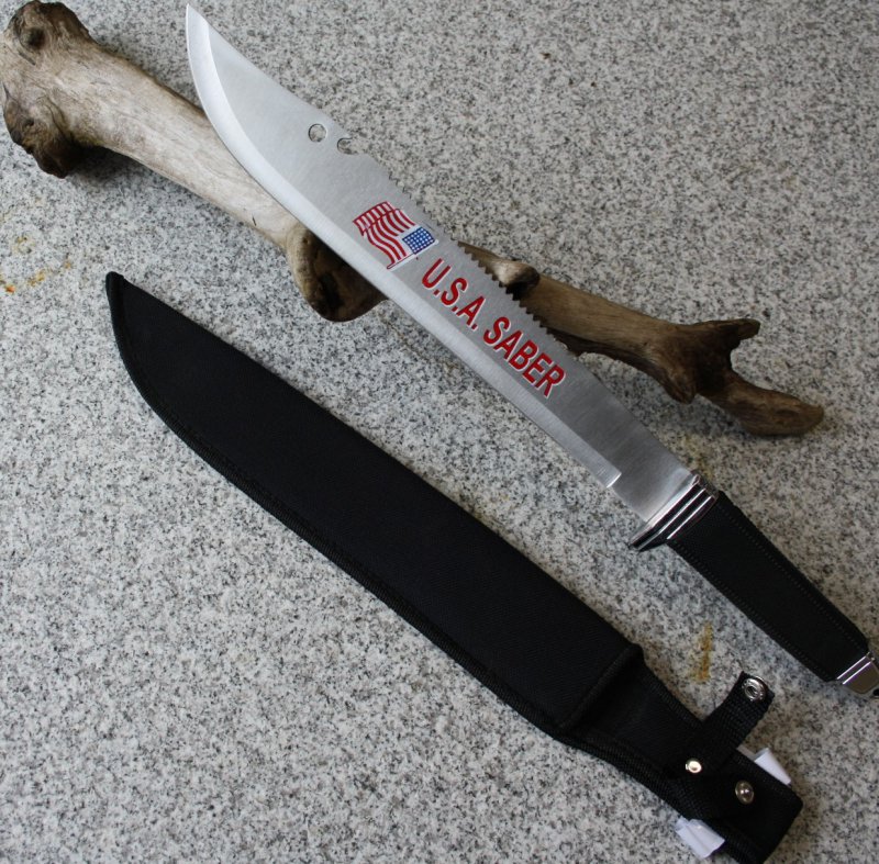 Preis: 19,98 EUR inkl. gesetzl. MwSt. zzgl. Versand Artikelnr.: F755 Lagerbestand: 5 Gewicht: 0,30 kgMachete Buschmesser Hackmesser Funktionsmesser Sägemesser