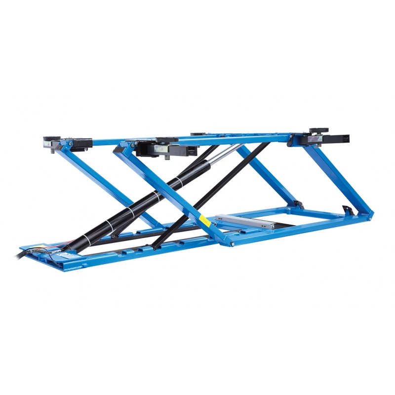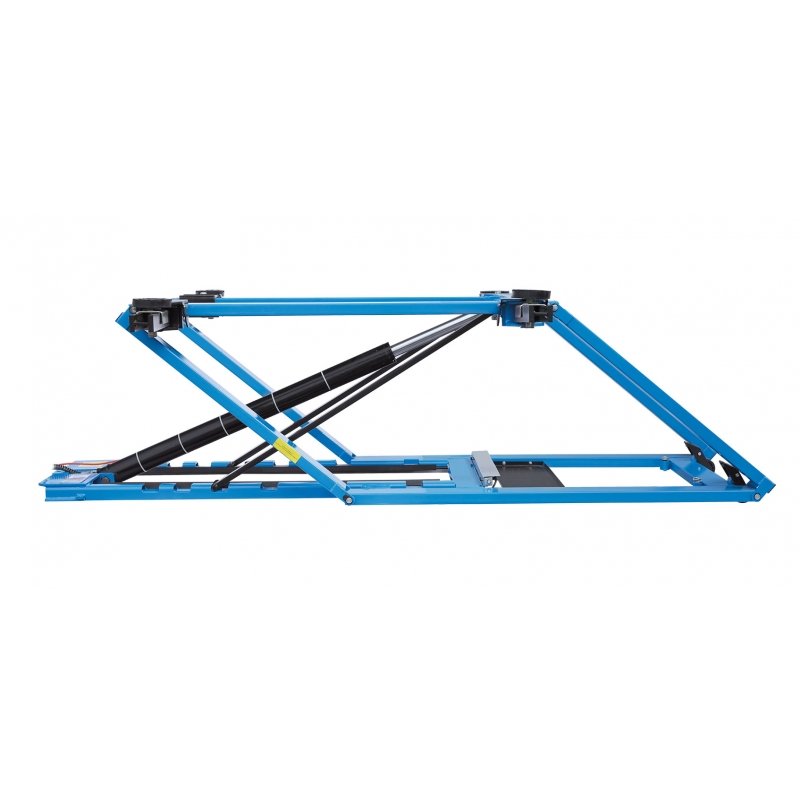 Mobile, pneumatisch/hydraulische Hebebühne mit einer Tragkraft von 2,5 Tonnen. Geeignet für Garagen und Räume mit niedriger Höhe.
